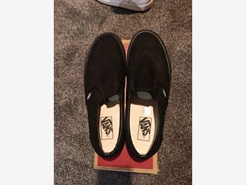 VANS : Original black on black slip ons.